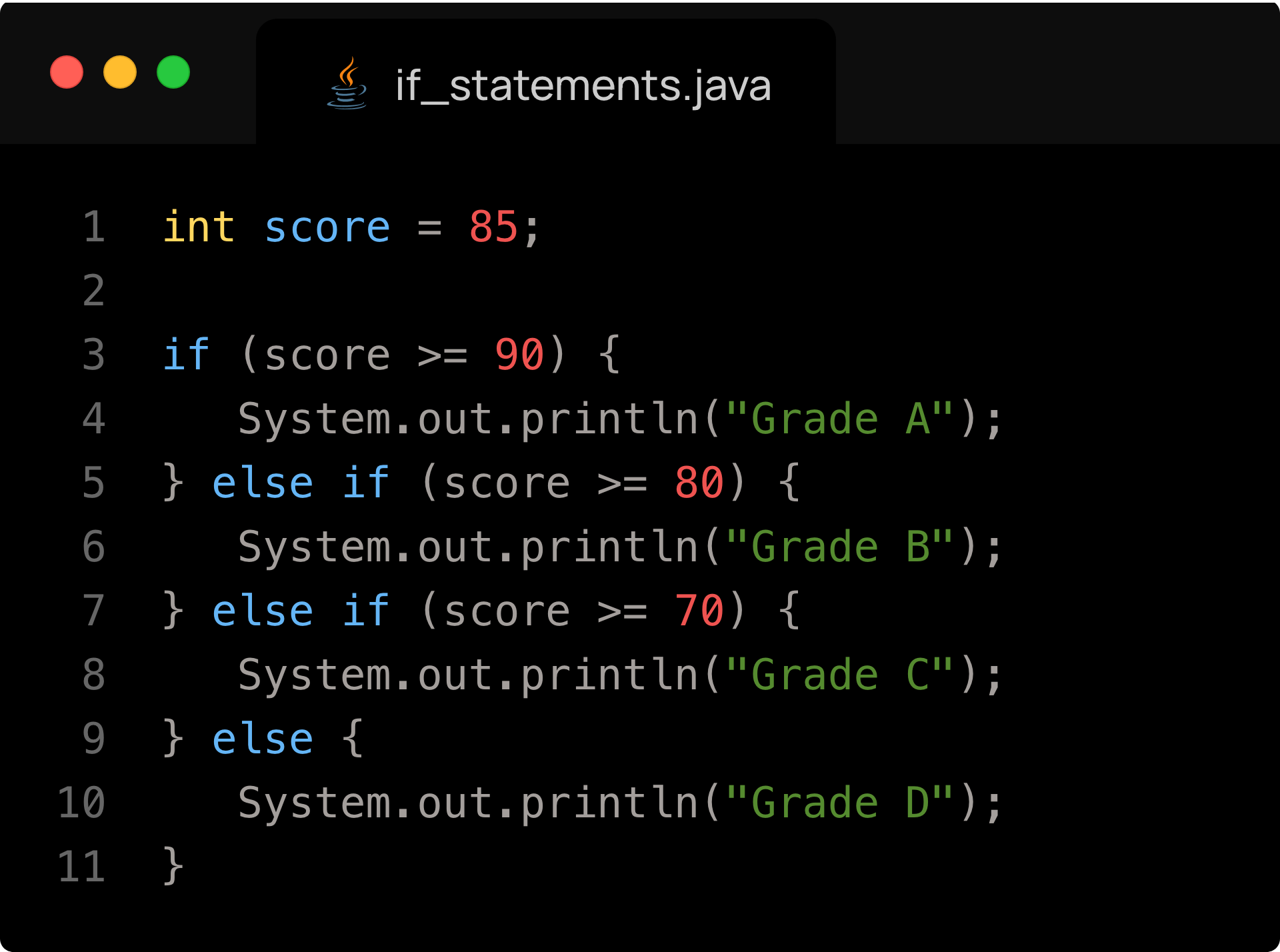 - The program above will print “Grade A” if score >= 90 evaluates to true