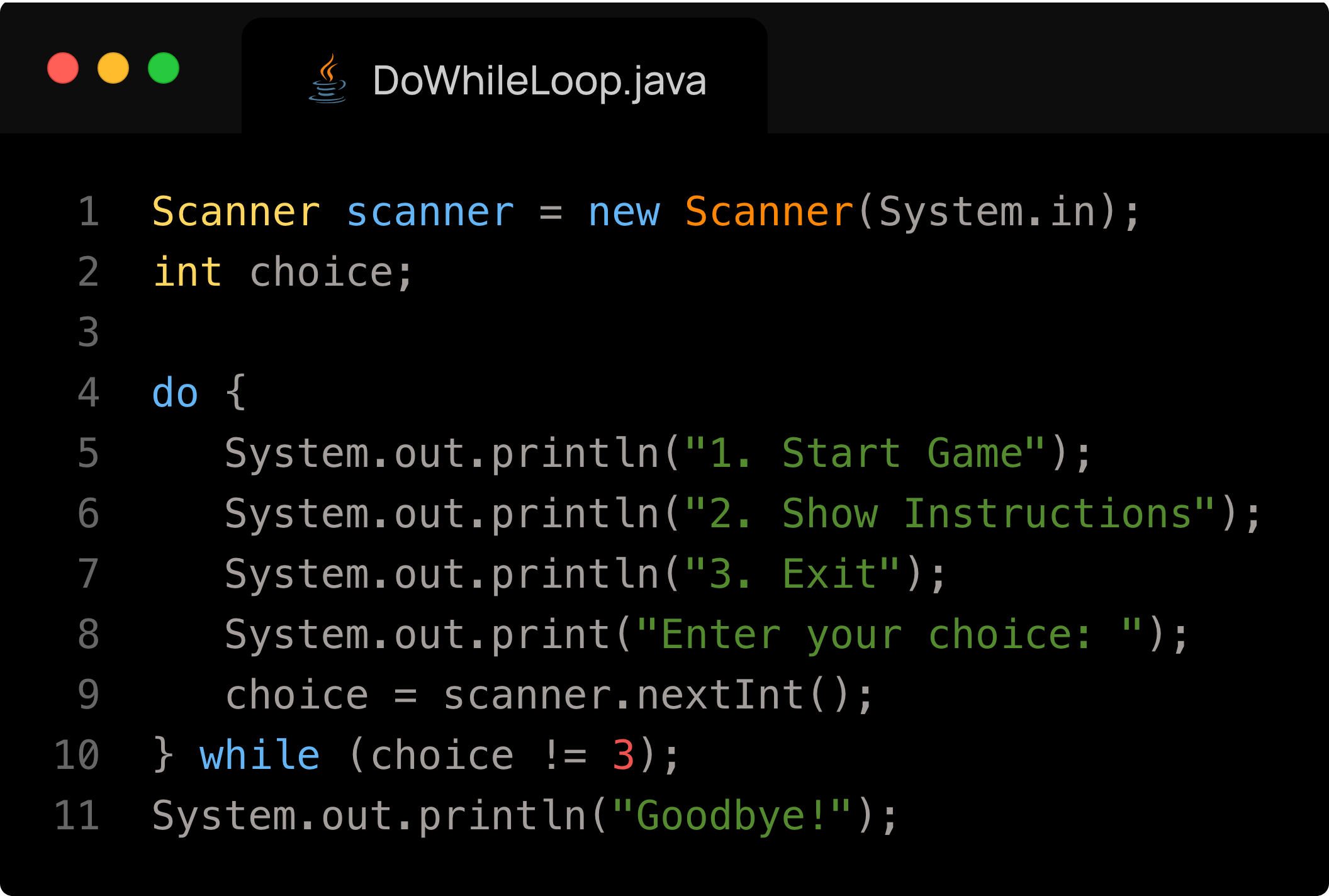 Example of a simple menu system with a do-while loop: