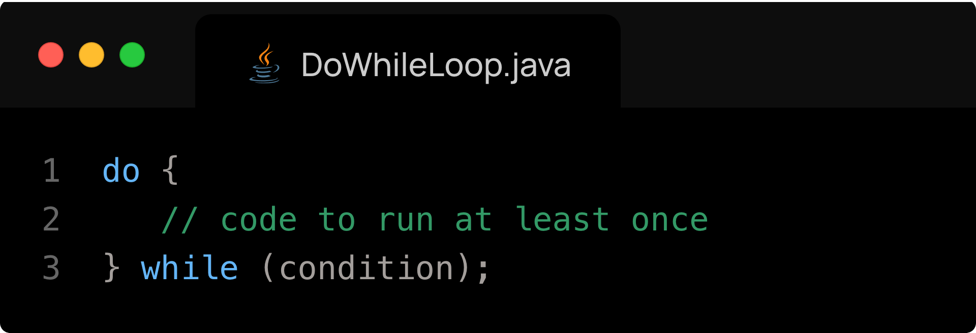 - Runs the loop body once, then checks the condition