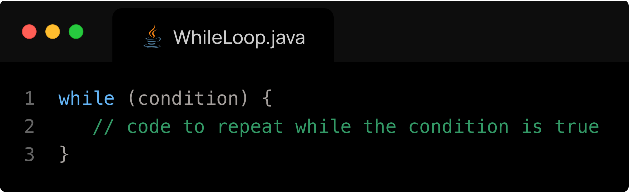 - Condition: checked before each repetition; loop continues while true